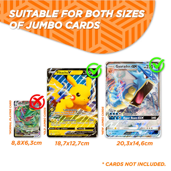 • Exhibe tus cartas jumbo con estilo – ¡porque las cartas grandes merecen una gran protección!